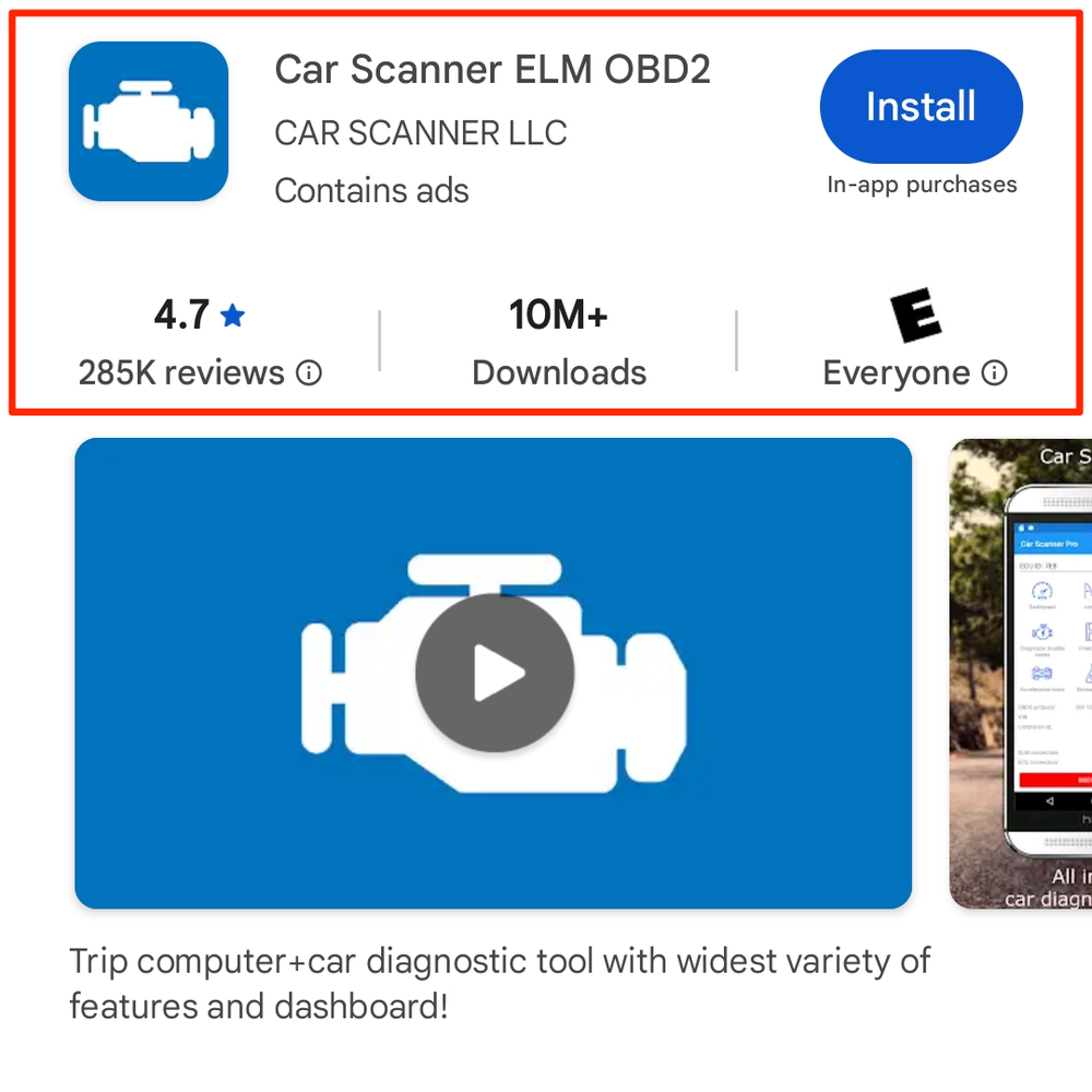 Search for and download "Car Scanner ELM OBD2" from the Google Play Store.