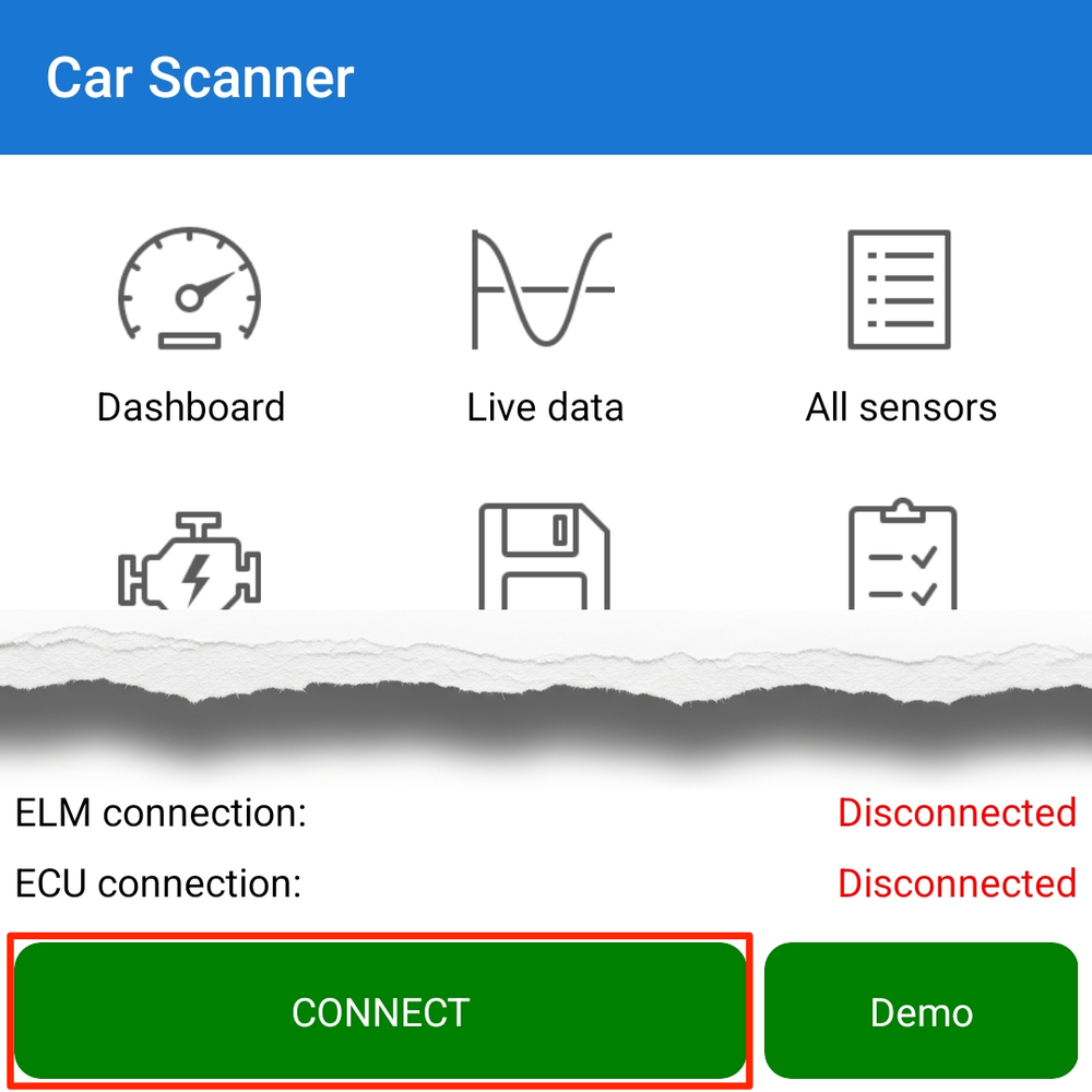 After making any changes, return to the main dashboard and tap “Connect” to use the scanner.