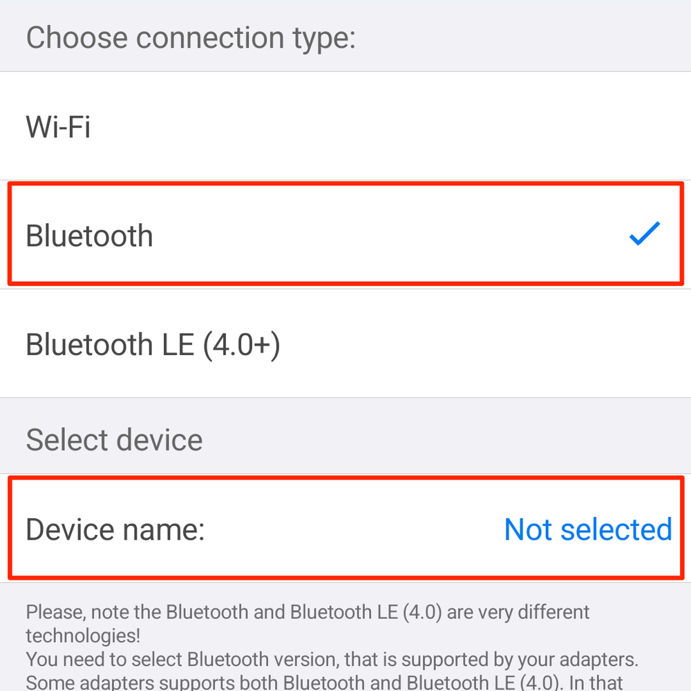 - Tap on “Device name” and select “VEEPEAK” from the list.