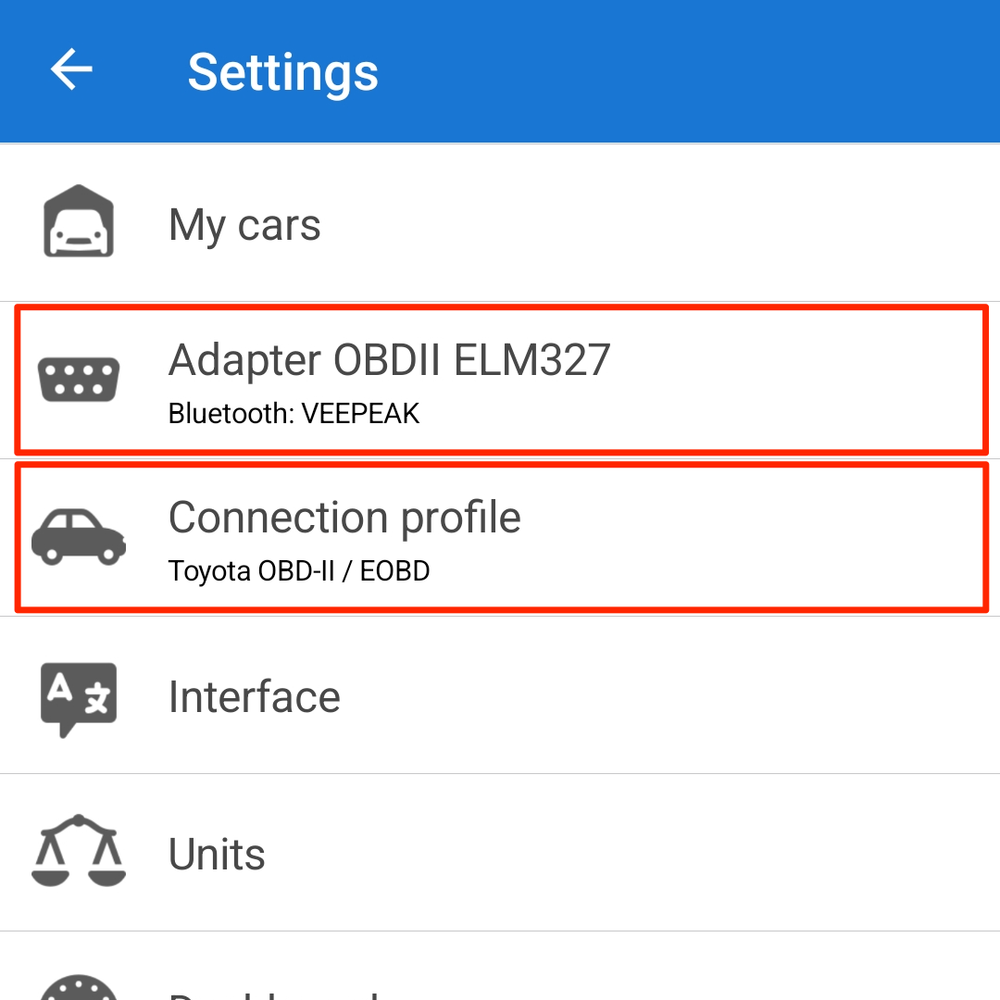 - Go to “Adapter OBDII ELM327” to change your connection type or re-select the Bluetooth device (as described in Step 6).