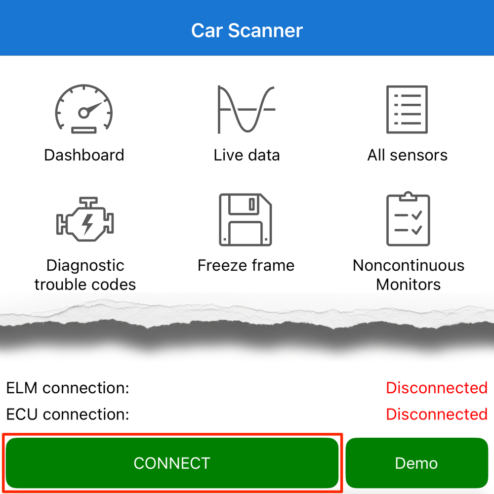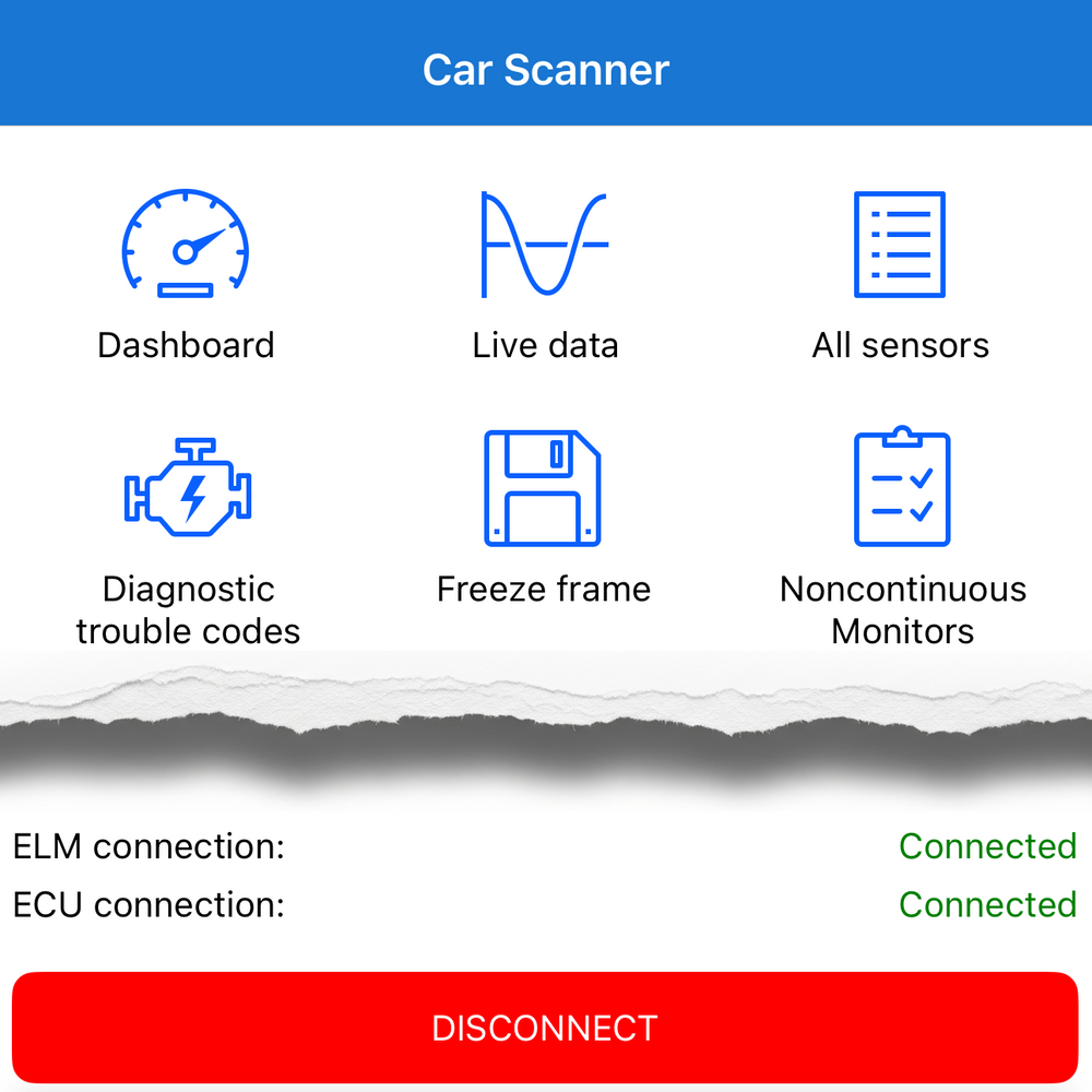 When both the ELM (the OBD2 device) and the ECU (the vehicle) are successfully connected, you can begin using the app.