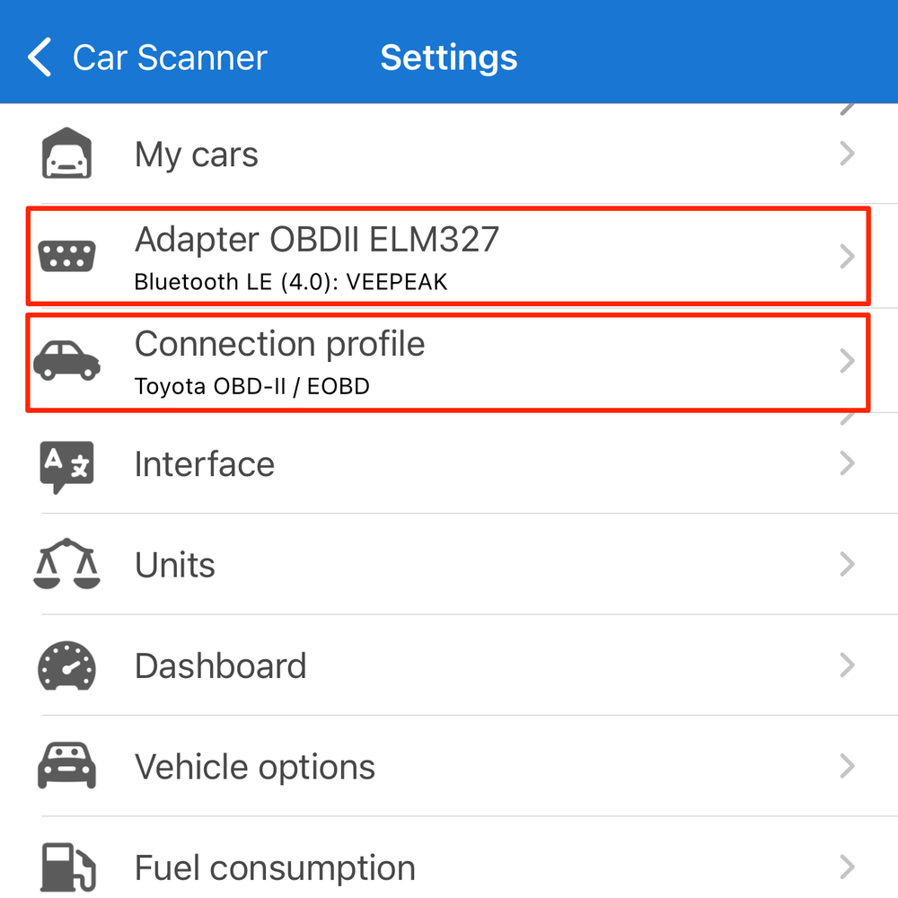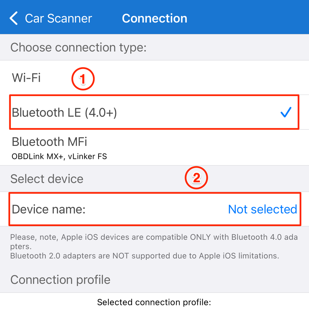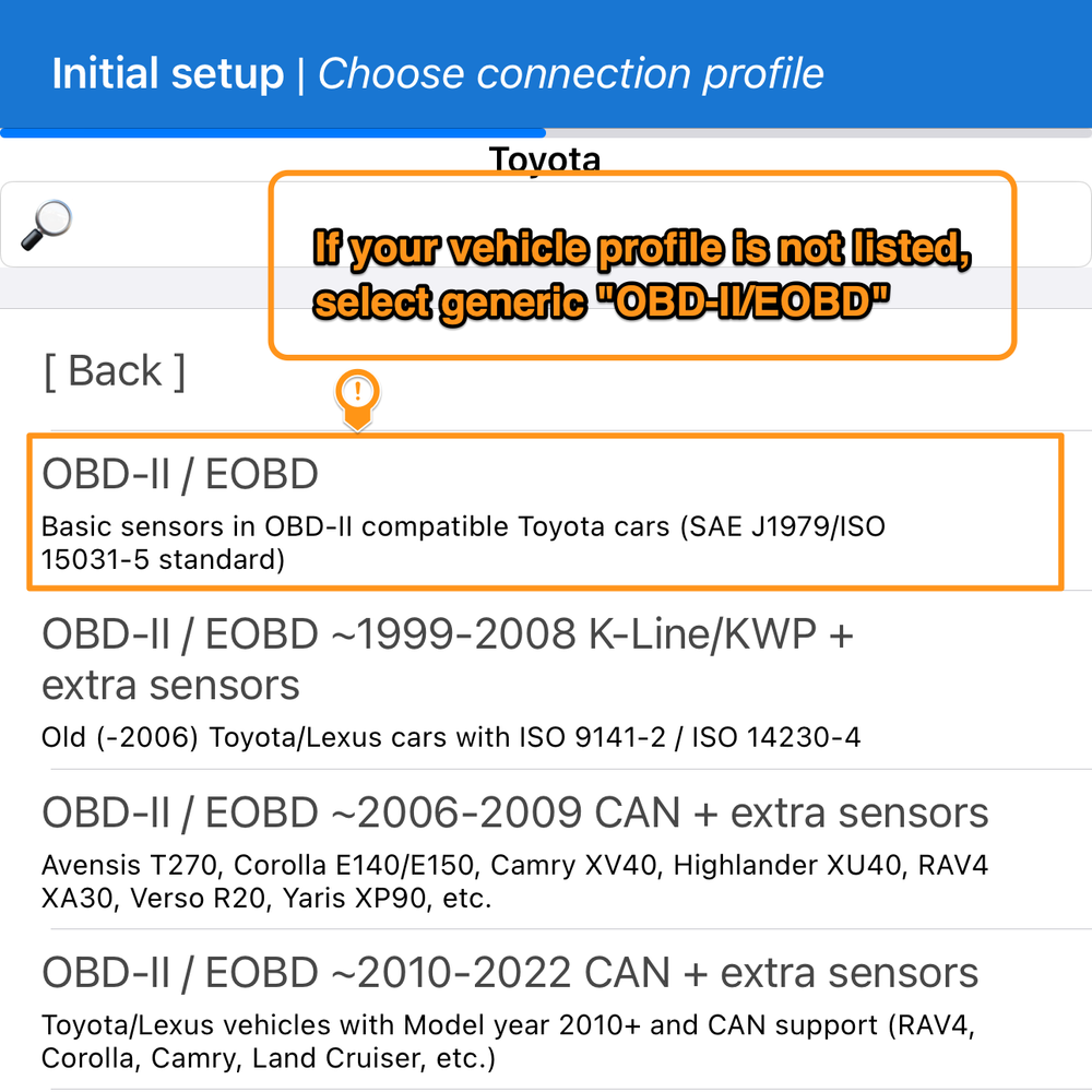- Tip: The Car Scanner App has many profiles. Selecting the correct one may provide you with more data readings. However, if there is no suitable profile for your specific vehicle, please select the generic “OBD-II/EOBD” option.