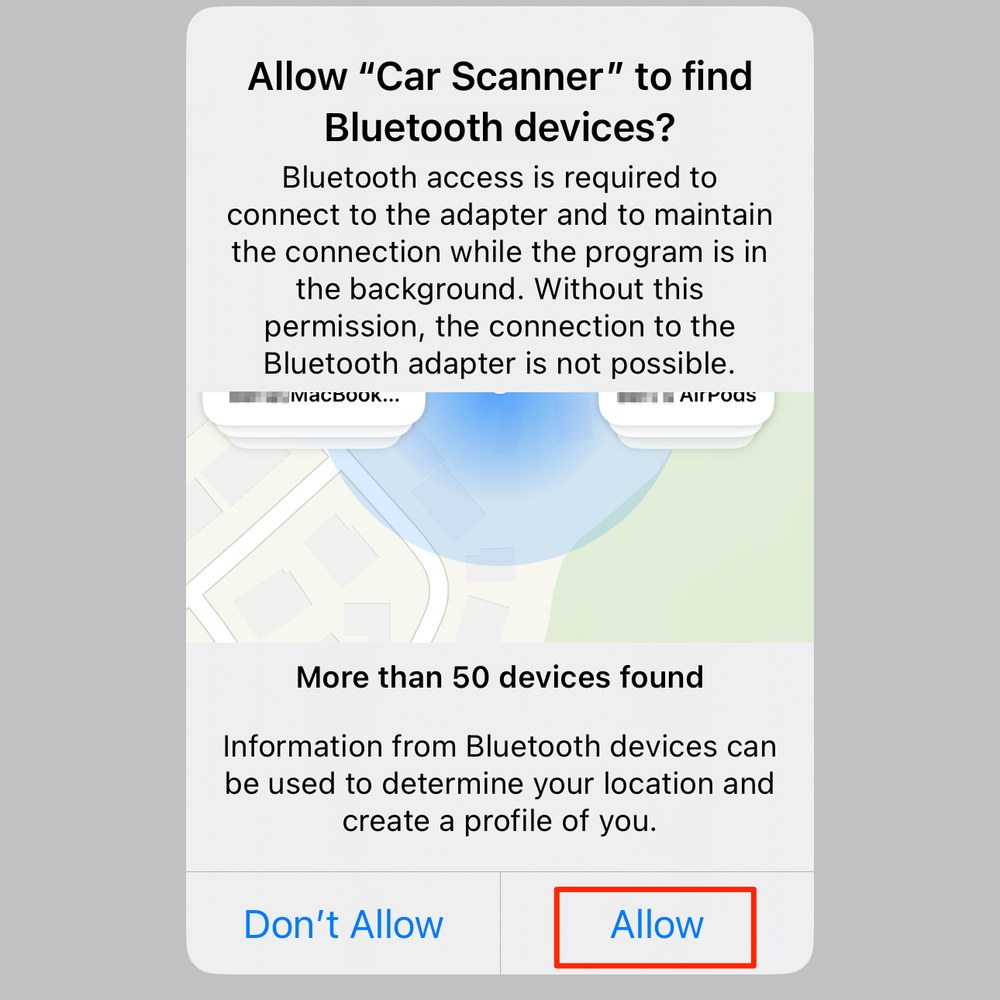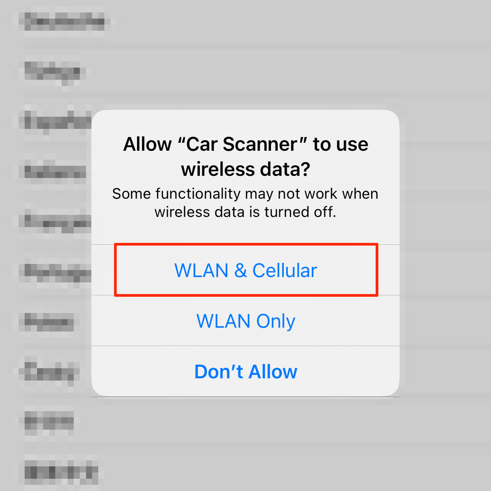 Launch the Car Scanner App. You will be asked to grant permission for wireless data usage (typically, you should choose “WLAN & Cellular”).